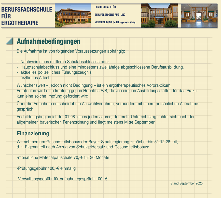 Berufsfachschule für Ergotherapie, GFAW, Ausbildung zum Ergotherapeuten, zur Ergotherapeutin, Ergo,